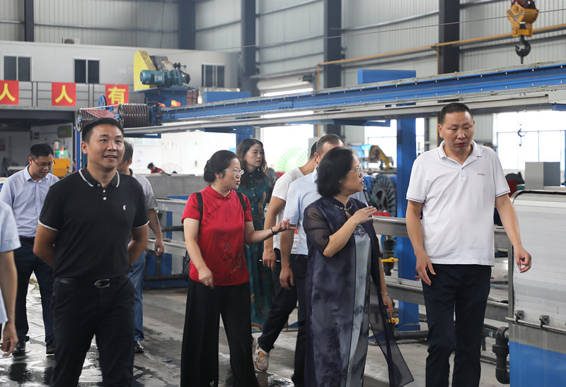 李農妹一行深入三湘電纜的生產車間參觀指導,就公司近三年科技創新政策的出臺、科技項目的實施、科技成果的轉換、科技平臺的創建、科技園區的建設、引進和培養科技人才的落實情況進行實地調研指導,并就車間生產管理、技術研發支持等方面現場提問,公司董事長申旺都逐一詳細解答。